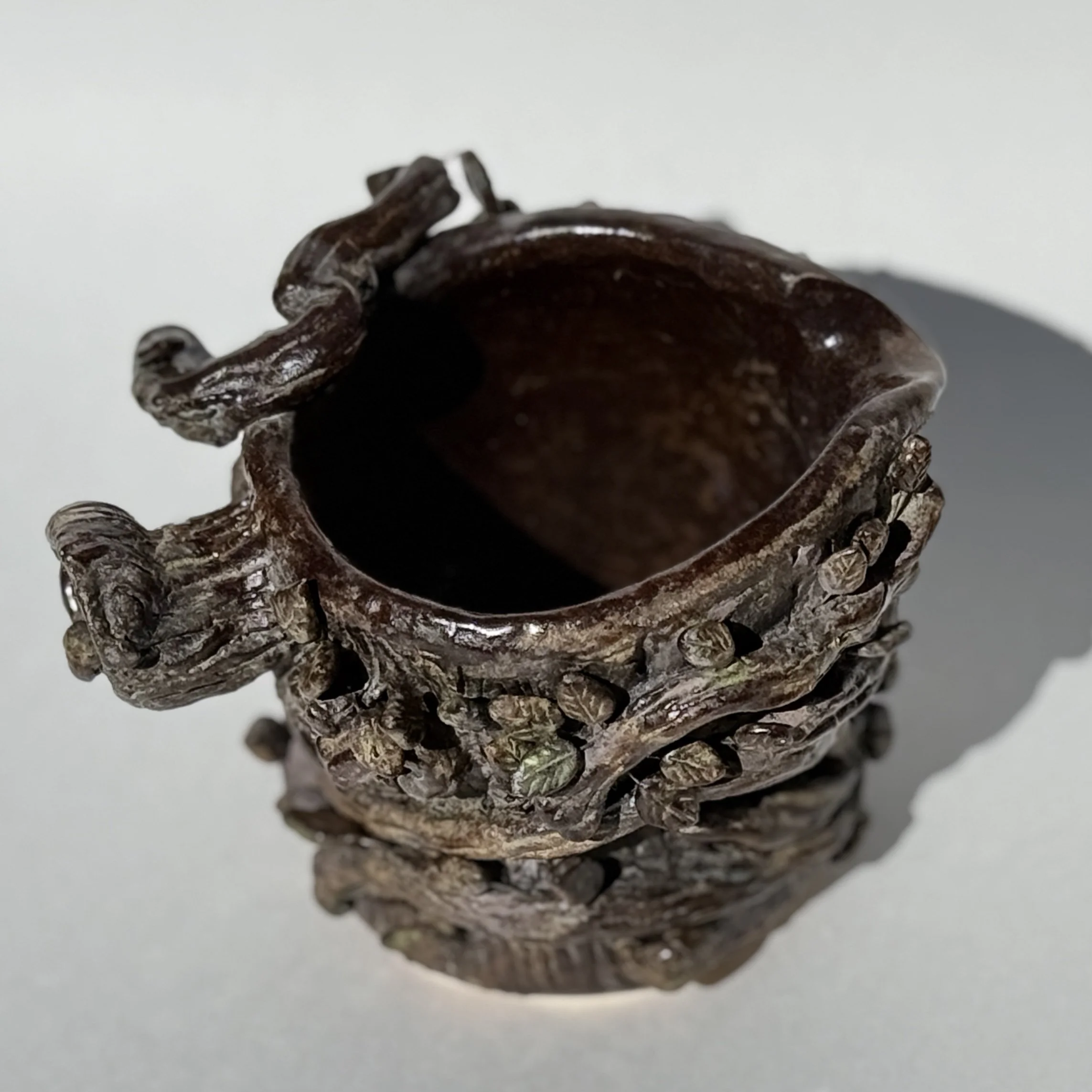 Forms shaped by growth and time, suggesting hidden structures and an interior life within the forest.